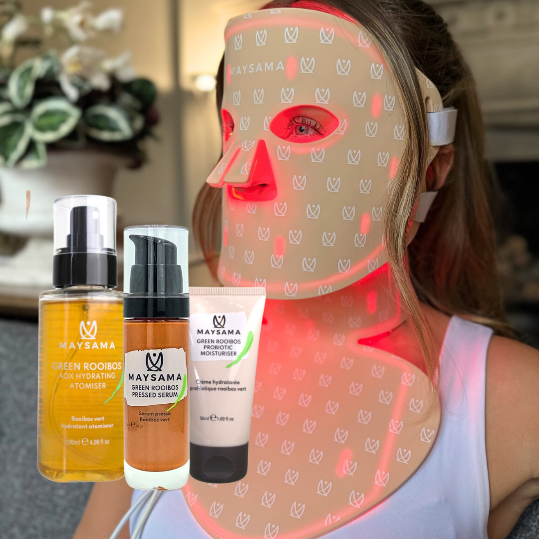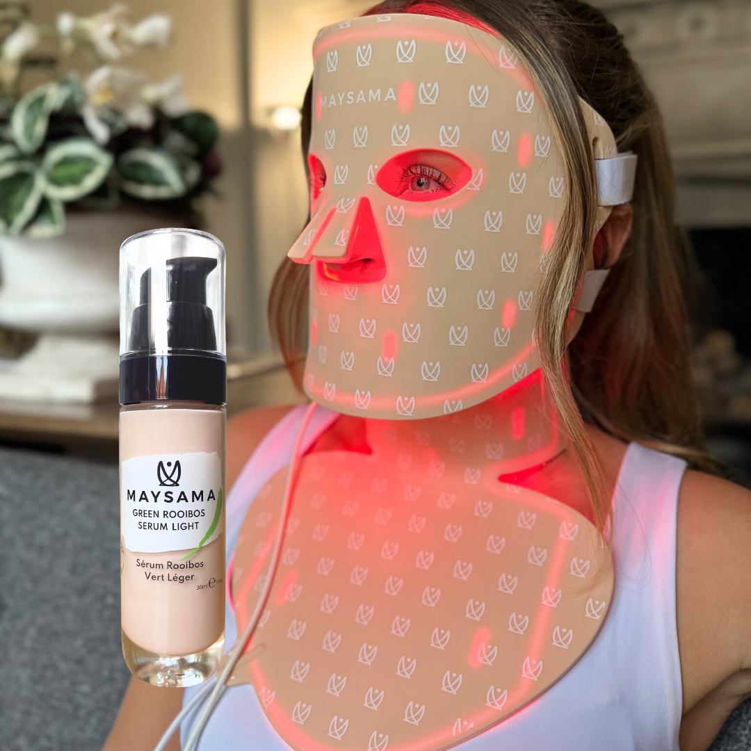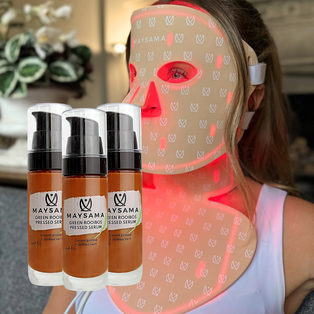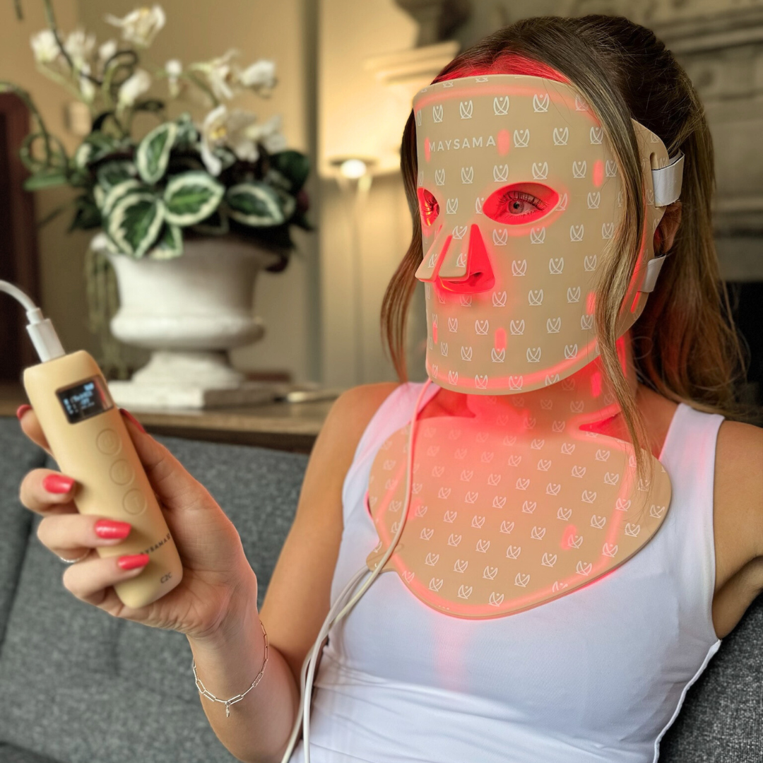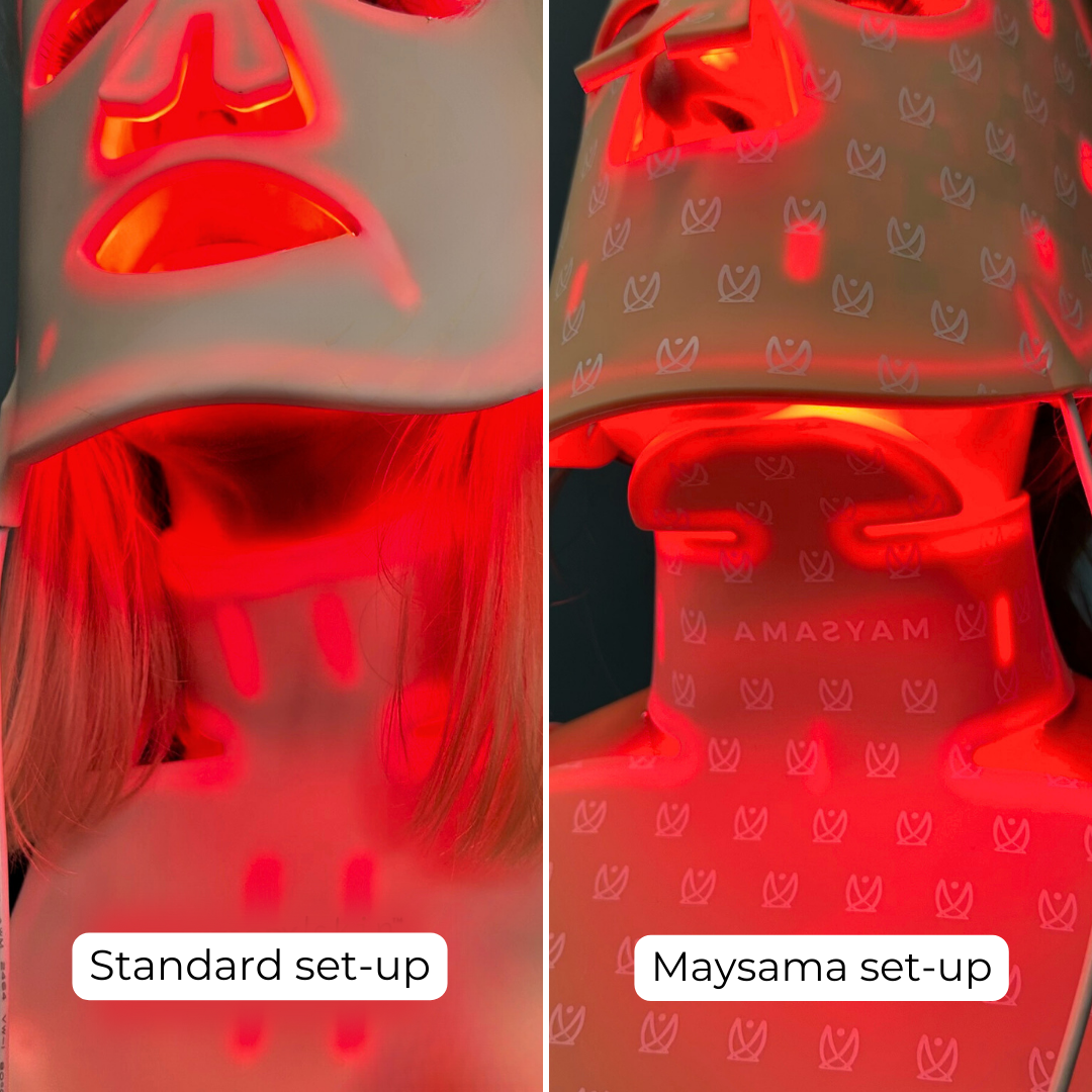 Die LED-Geräte von Maysama nutzen gepulstes Licht, um die Wirksamkeit Ihrer Rotlichttherapie zur gezielten Hautverjüngung zu steigern.