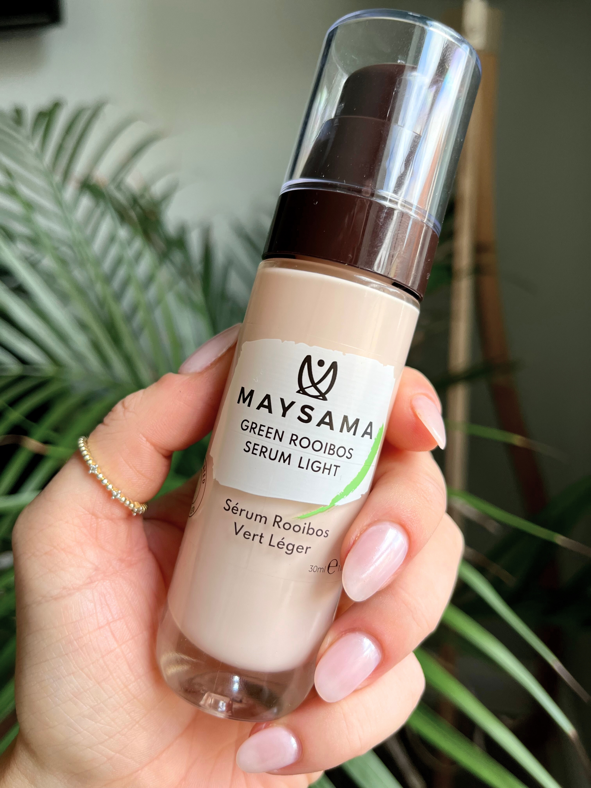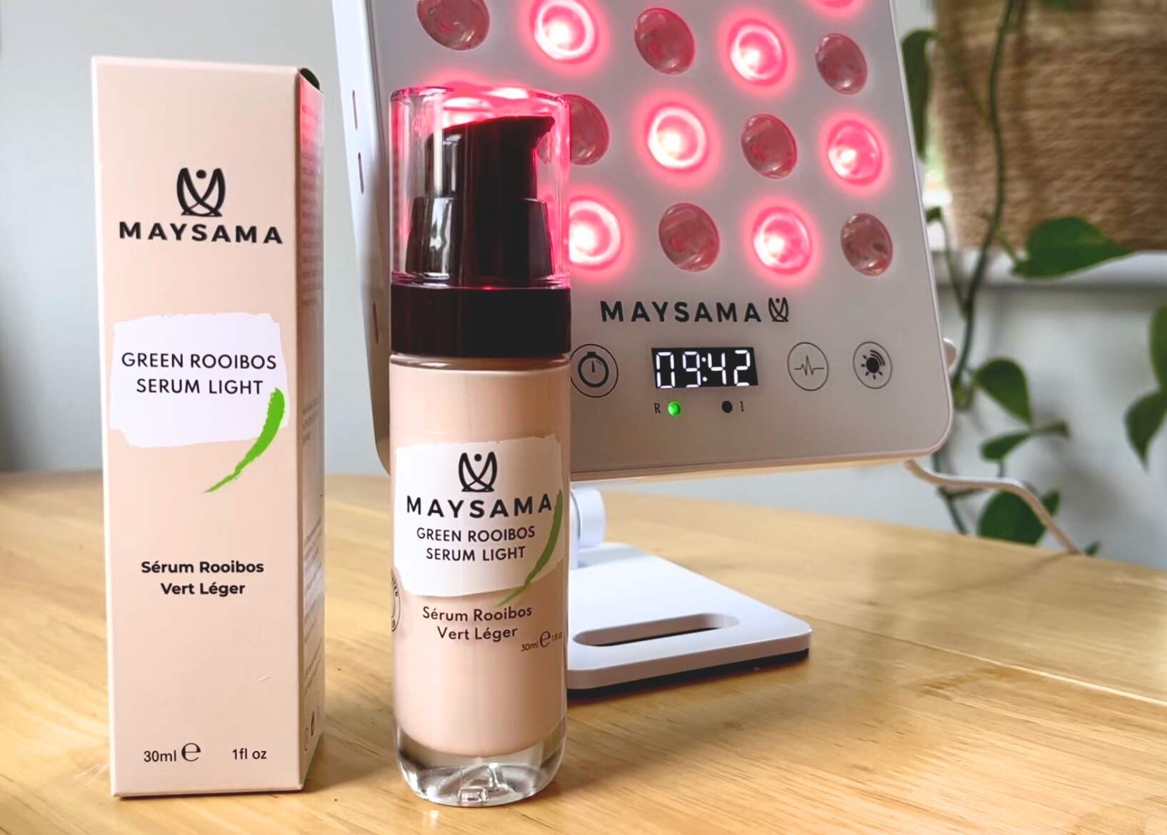 Ich habe mein Maysama Green Rooibos Pressed Serum sieben Monate lang zusammen mit meiner Rotlichttherapie verwendet und bin überzeugt, dass diese Kombination meine 54 Jahre alte Haut um mindestens fünf Jahre altern ließ. Das hat für mich alles verändert.