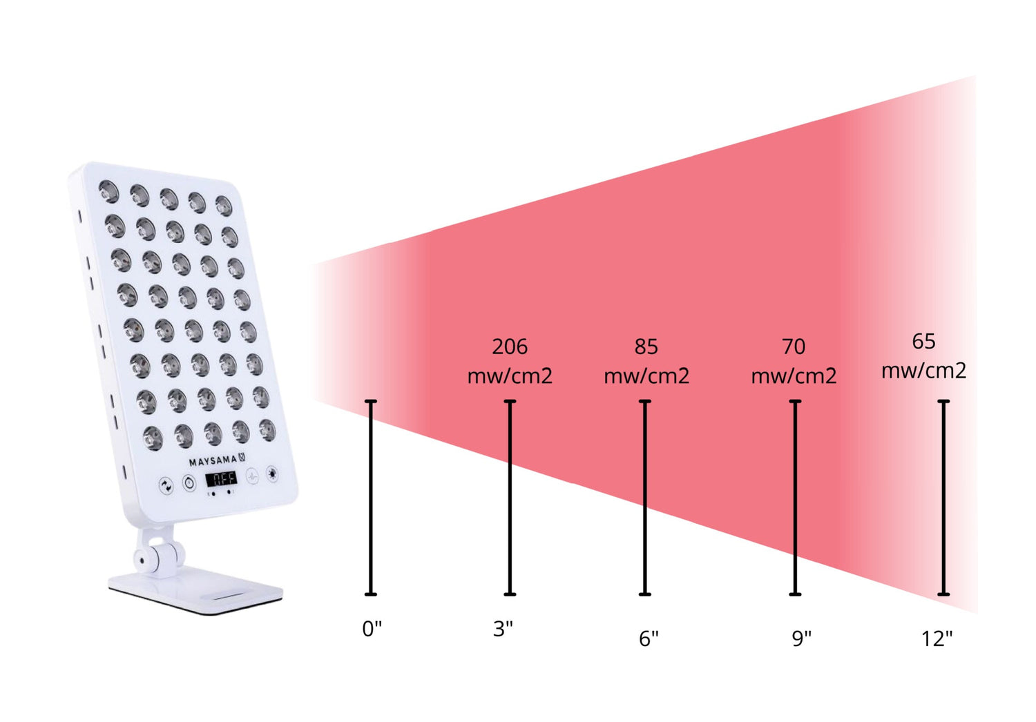 A. To achieve the best results with Maysama’s Red Light Therapy panel, we recommend a total treatment time of 7 minutes (1 minute continuous wave, followed by 6 minutes of pulsed light), with red + near infrared light, minimum 3 x per week. If you cannot tolerate pulsed light, we recommend a treatment time of 10 minutes of continuous wave.